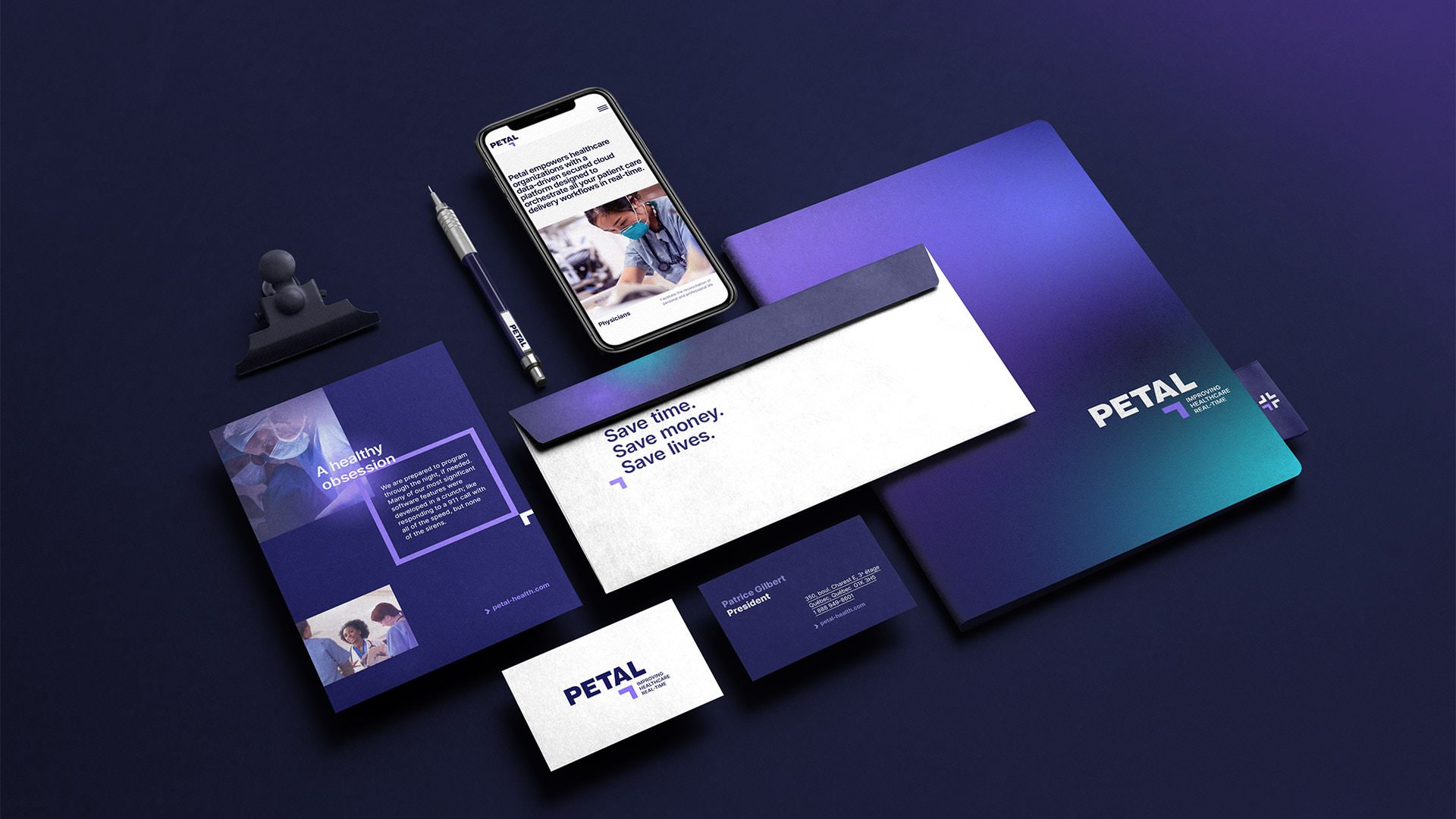 Dans le milieu très complexe et dynamique du système de la santé, Petal amène de la clarté et du concret. Avec Petal, on arrive toujours à y voir plus clair et à travailler de manière plus fluide. C’est avec tout ça en tête que Kabane a développé une image de marque épurée qui met aussi de l’avant le côté innovateur de Petal. L’agence a aussi créé la signature « Orchestrer les soins en temps réel » pour souligner la polyvalence de Petal.