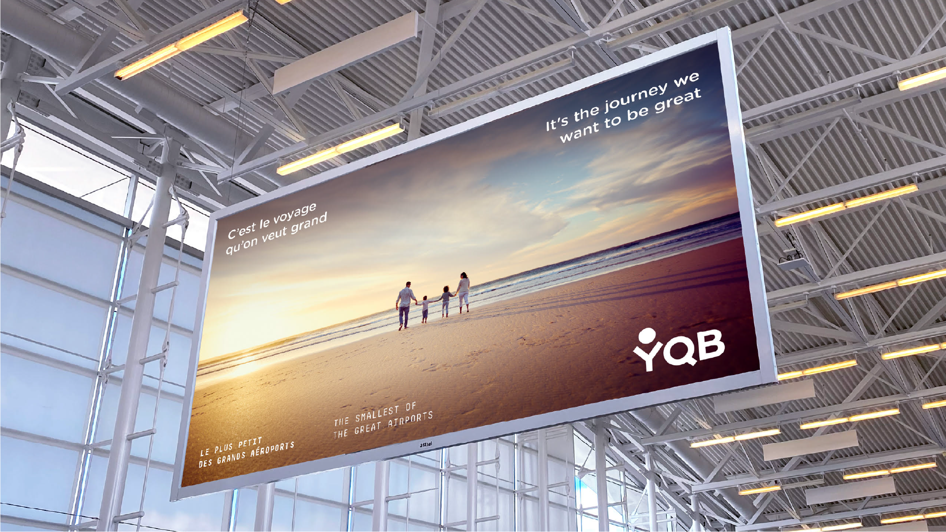 C’est ainsi que la campagne « Petit aéroport. Grandes destinations. » est née. Une initiative qui mise sur les petits plus de YQB pour inciter les voyageurs de la région à s’envoler au départ de Québec. Déployée à la télévision, en affichage et sur le web, l’offensive agit simultanément sur la notoriété de l’aéroport, la valorisation de ses avantages et la promotion de ses vols directs. Bref, une grande visibilité pour le plus petit des grands aéroports.